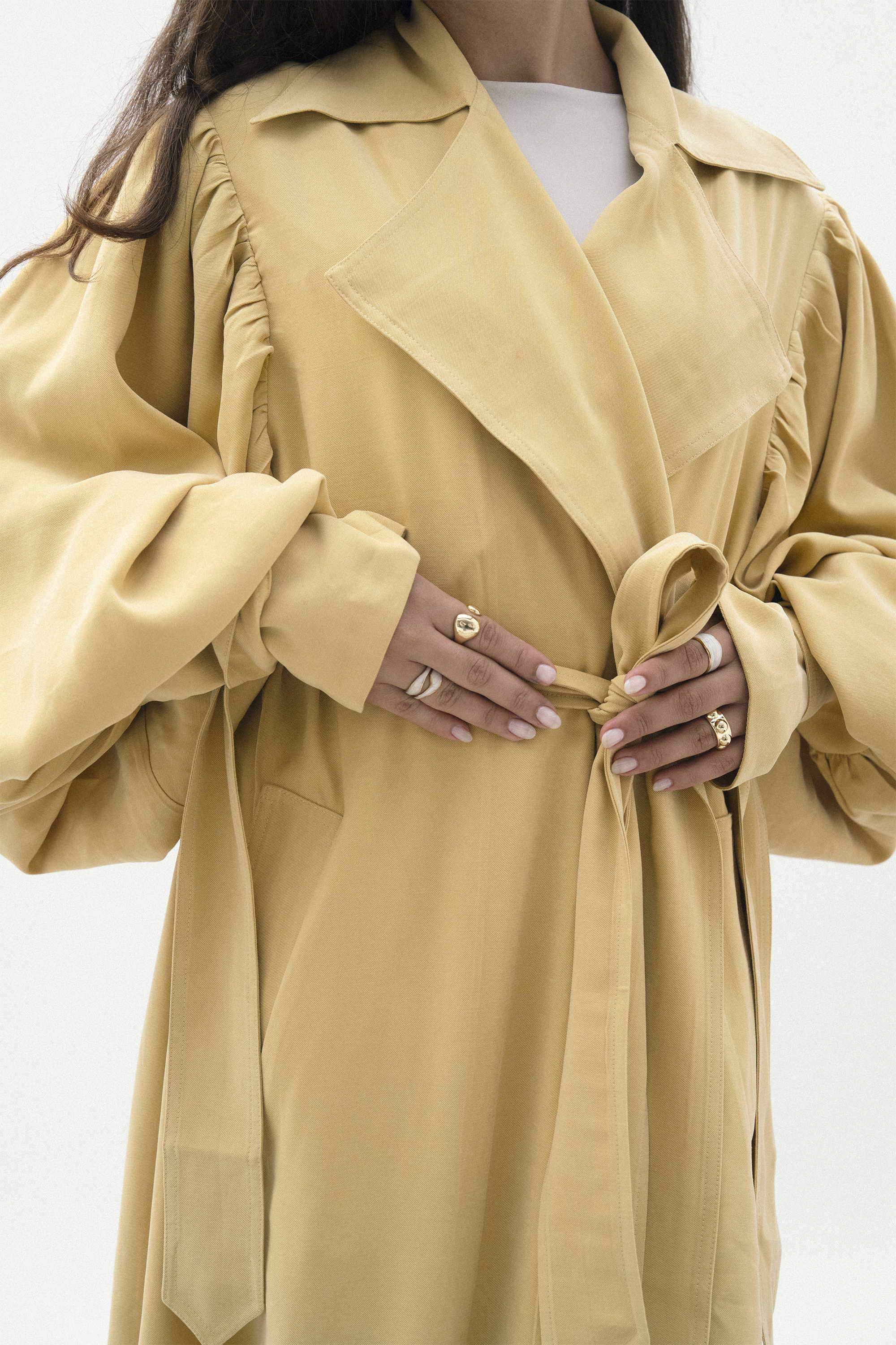 Gathered shoulder and cuff details