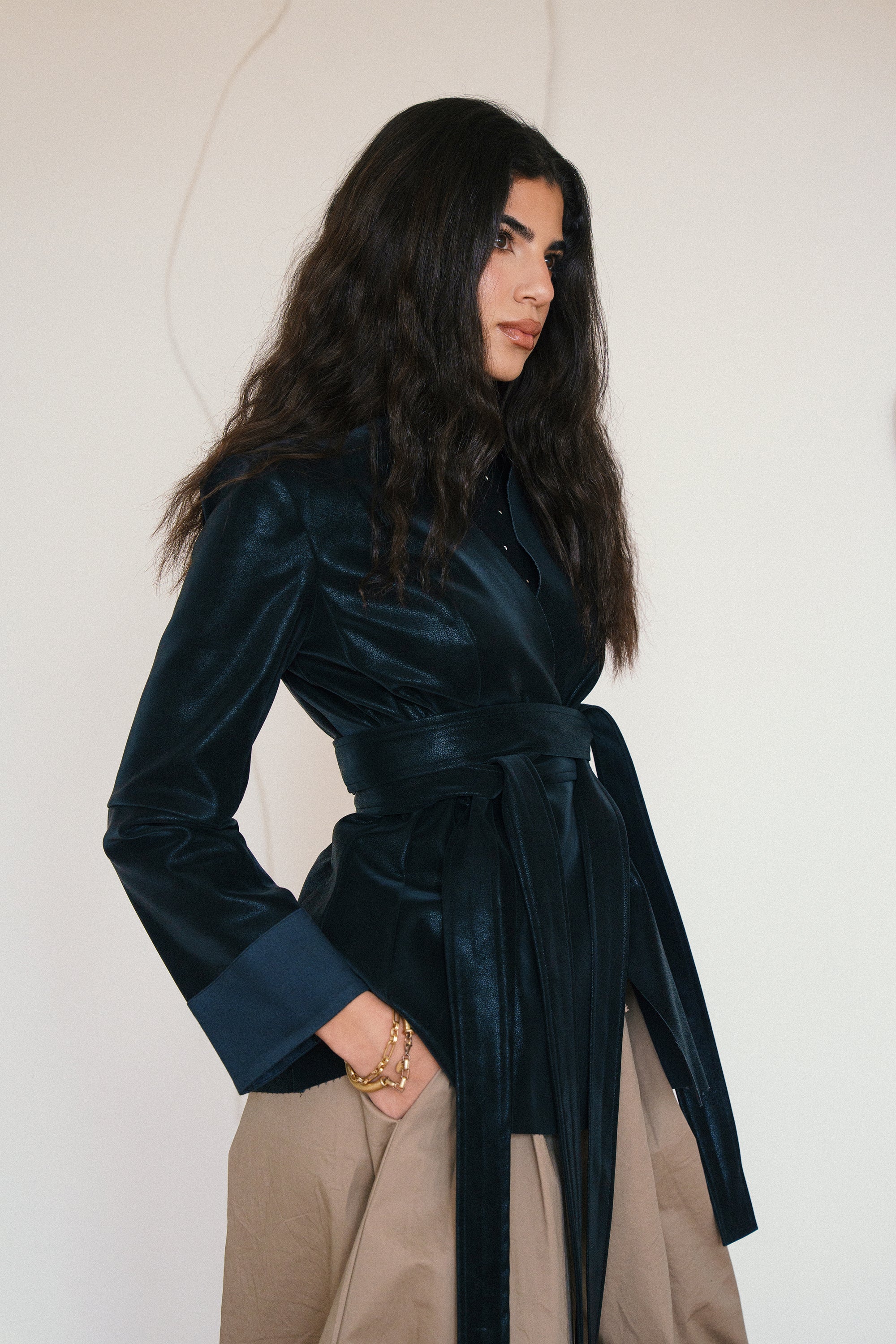 • Designed for a waist-defined yet fluid fit