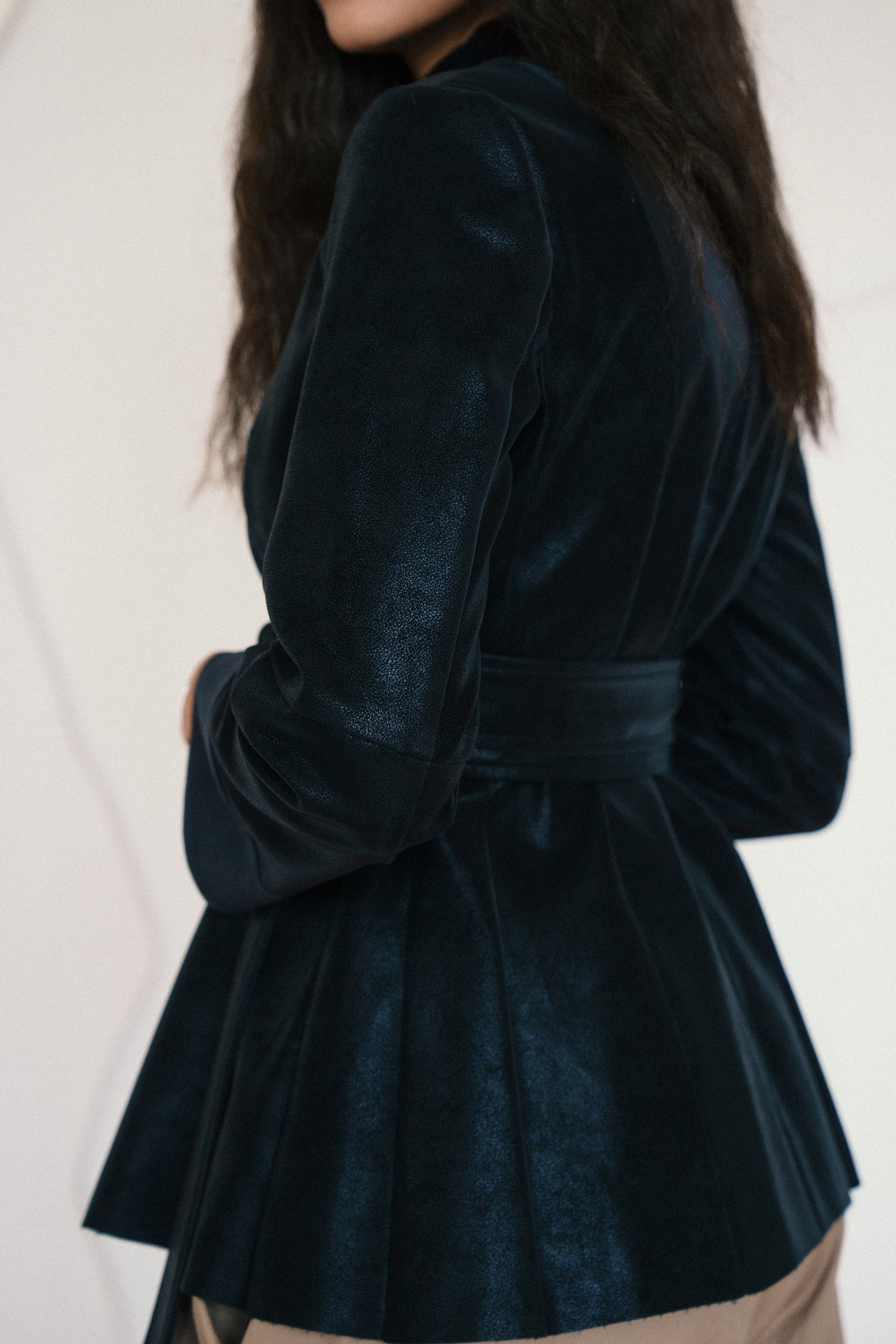 • Subtle pleated detailing at the hem