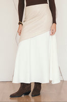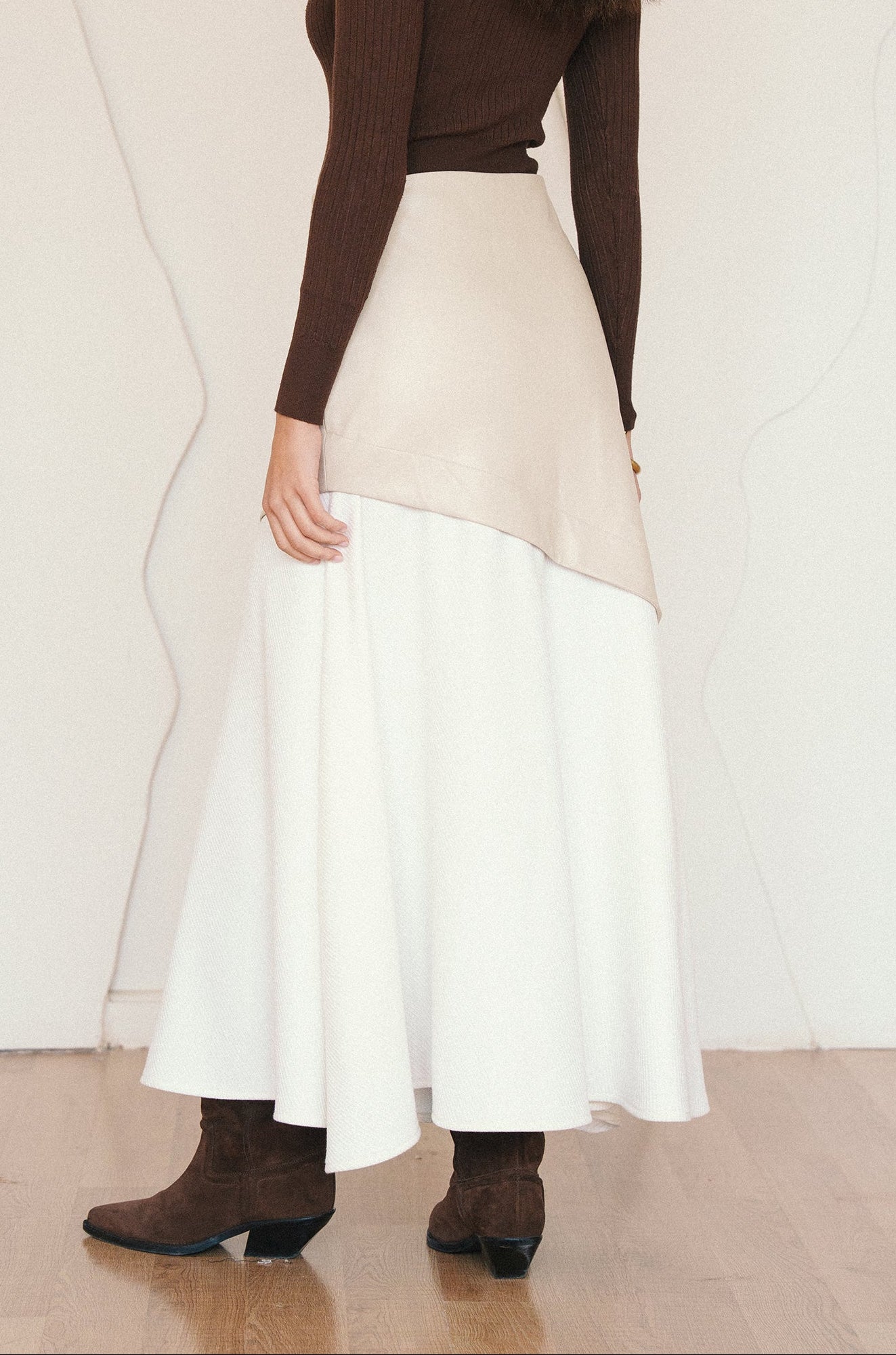 Details: High-waisted skirt Asymmetric upper layer Diagonal top layer overlay Full-length, flowing underlayer Side zipper closure Fabric & Care: Structured woven fabric for the upper layer Soft, fluid fabric for the underlayer Refined finish with elegant drape care:Dry clean only Sizing & Fit: True to size High-waisted fit Skims the body without clinging Model is wearing size Small