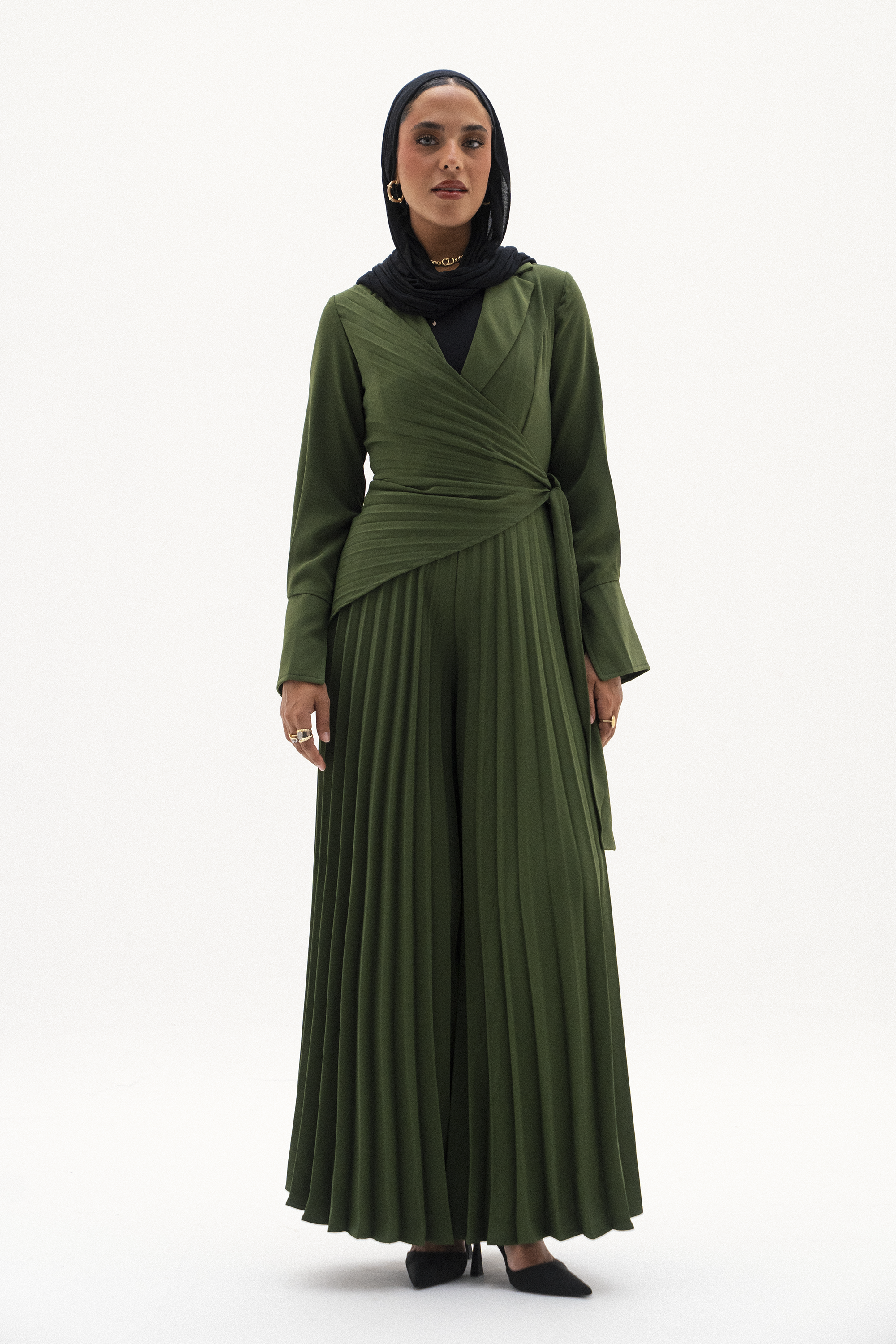 • Elegant wrap-style pleated jumpsuit.