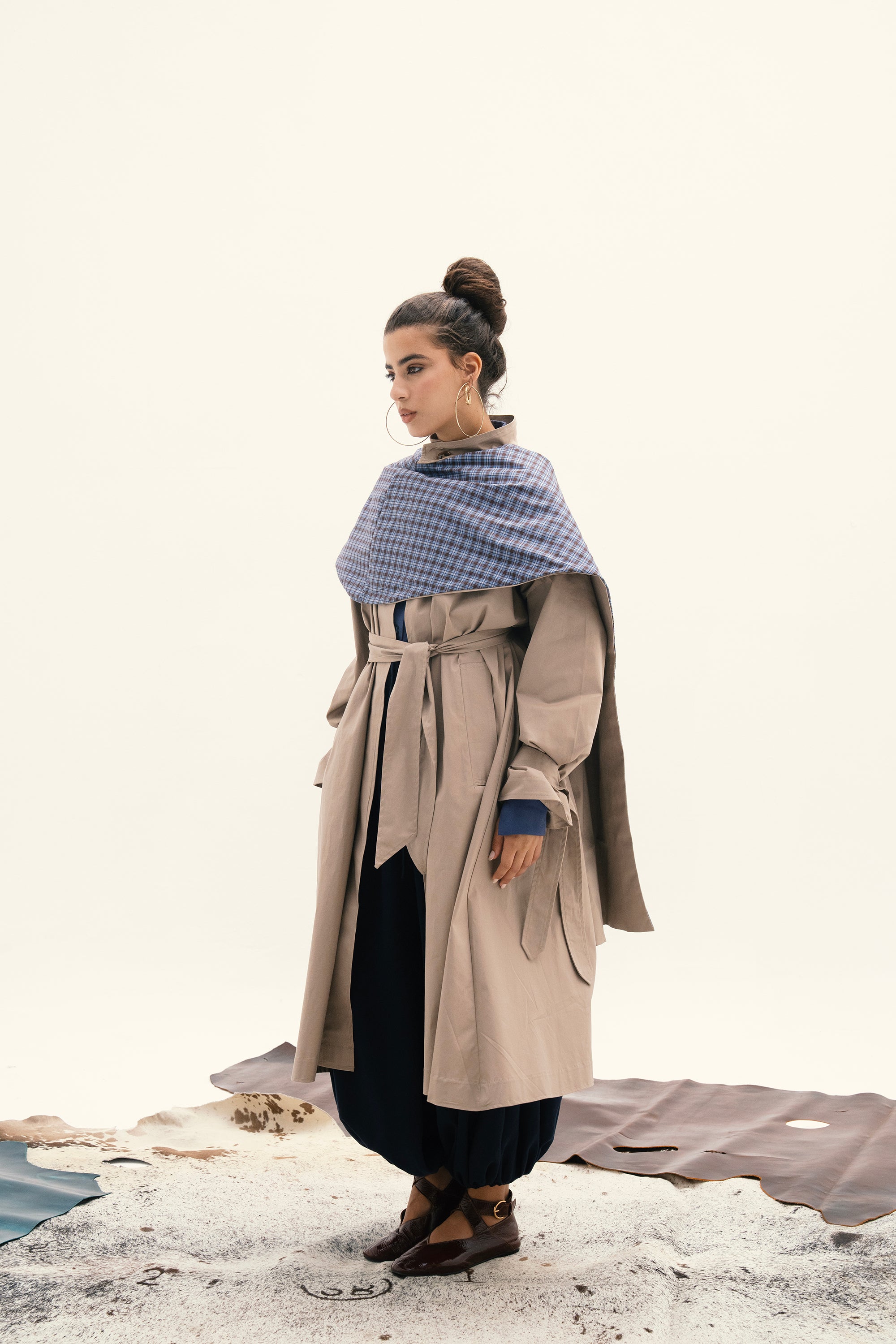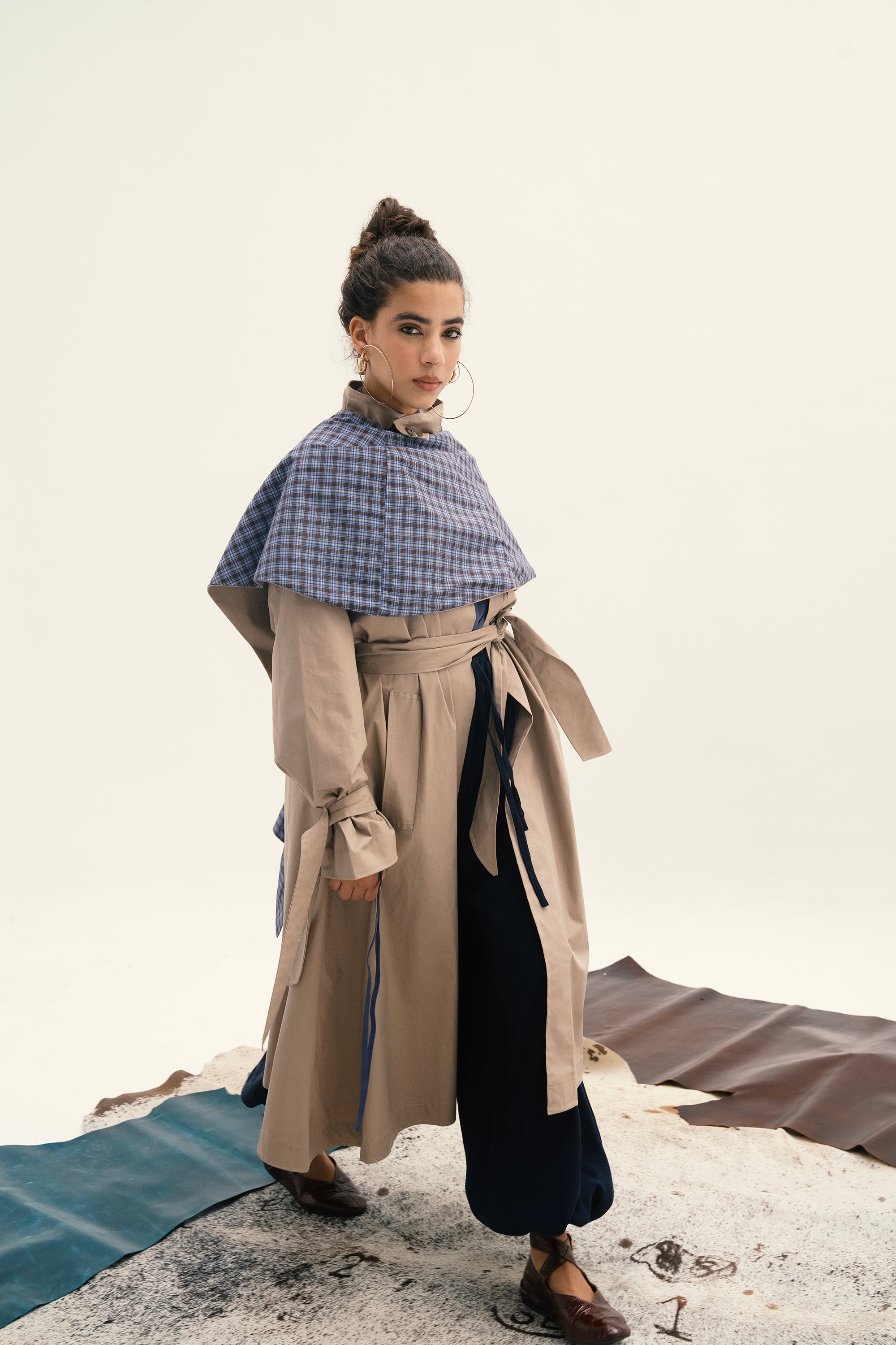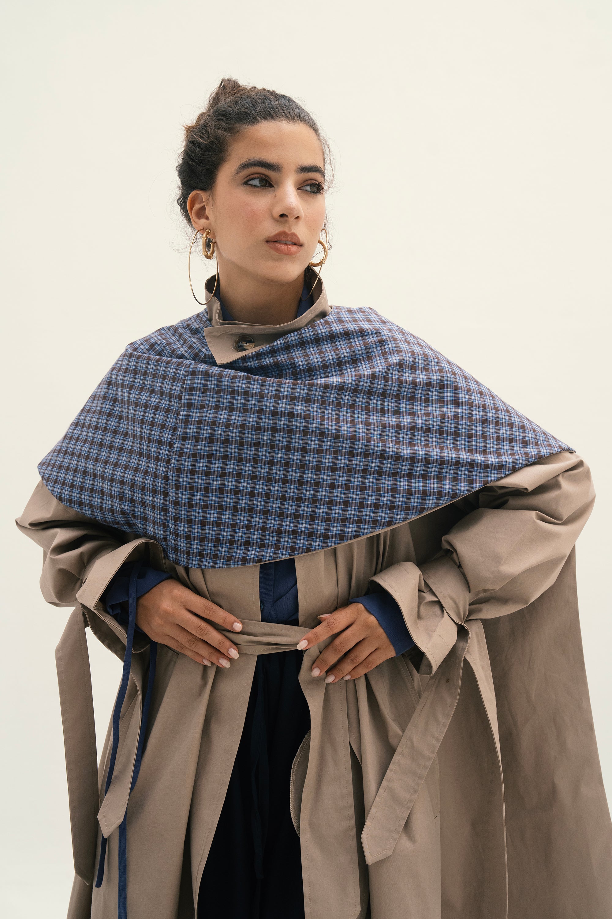 Classic trench coat with detachable double-face cape